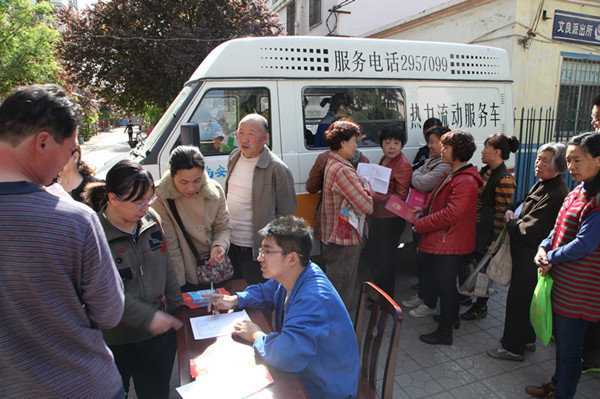公司服務(wù)人員在該小區(qū)院內(nèi),一邊在流動(dòng)服務(wù)車內(nèi)為用戶辦理居民采暖證,一邊在咨詢服務(wù)臺(tái)為用戶提供專業(yè)的供熱咨詢服務(wù),一邊在供熱宣傳展板前講解供熱政策,一邊向用戶發(fā)放供熱常識(shí)宣傳頁(yè)。整個(gè)服務(wù)現(xiàn)場(chǎng)氣氛熱烈、井然有序,深受小區(qū)居民和用戶的歡迎和贊揚(yáng)。